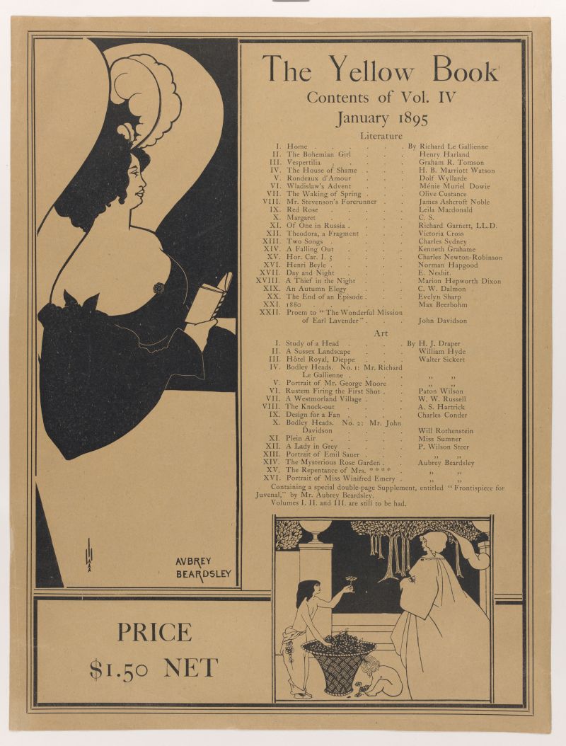 Shortly after Beardsley made this drawing The Yellow Book and Beardsley were overrun by scandal. Oscar Wilde’s libel trial against the Marquess of Queensbury collapsed in April 1895. Although Wilde never contributed to The Yellow Book in the popular imagination he was associated with it and many of its contributors, especially Beardsley. The offices of John Lane in Vigo Street were attacked by a mob and Beardsley was forced to flee to Dieppe, he remained in France until his death a few years later.
