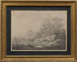 This incisive drawing was made towards the end of Gainsborough’s period of residence in Ipswich. Highly structured and elaborately composed, the drawing belongs to a small group of finished works Gainsborough made as he began to experiment with printmaking for the first time. Gainsborough spent seven years living in Ipswich, a town in his native Suffolk, during this time he filled a series of sketchbooks with rapid observations from nature. This compendium of plein air drawings formed the bedrock for Gainsborough’s later practice, allowing him to produce an extended series of landscapes composed of naturalistic trees, vegetation, buildings and animals, but arranged to form idealised visions which contemporaries understood as being charged with profound emotion.